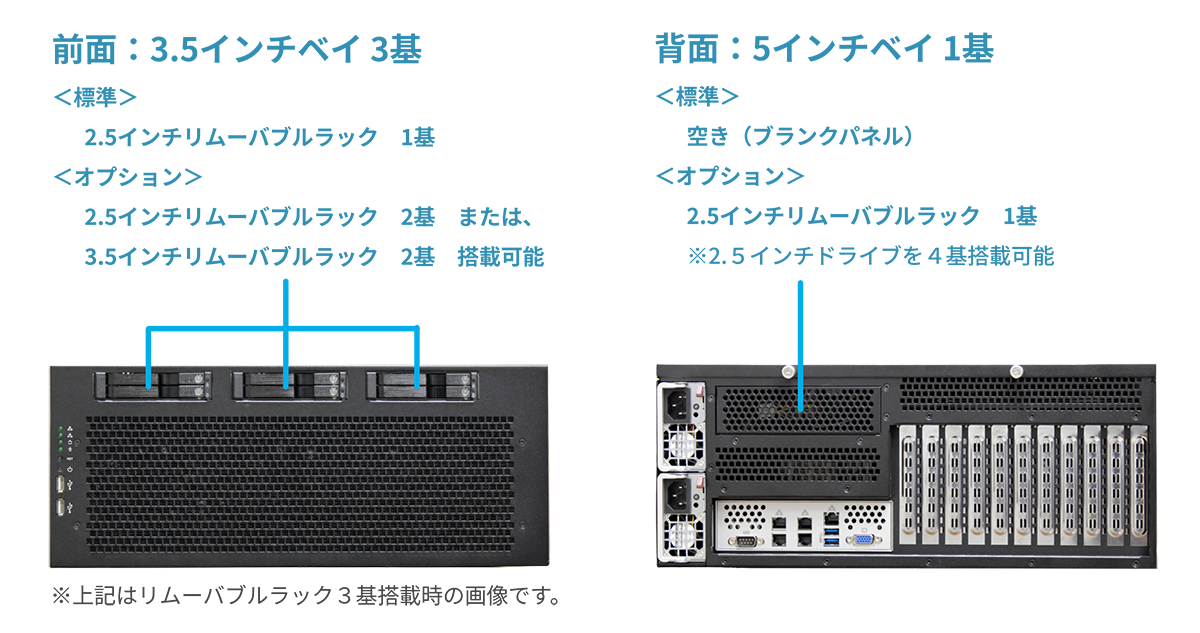 本モデルの豊富なPCIeスロットを活かし、高速ネットワークカード追加により、光ファイバー接続やInfiniBandなど用途に応じた柔軟なネットワーク構成にも対応できます。