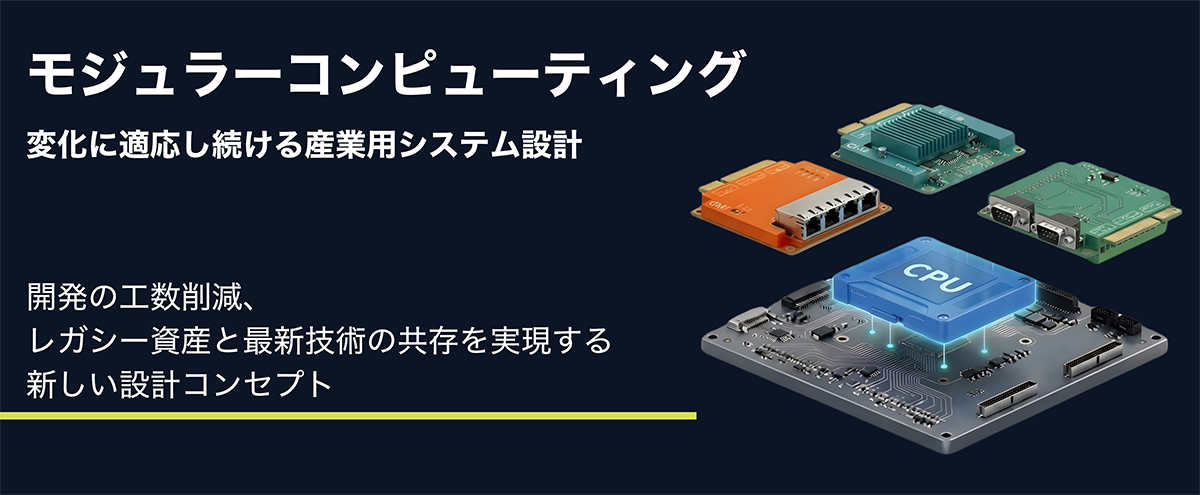 モジュラーコンピューティングは、システムを「継続する土台」と「進化する機能」に分離することで、この課題を解決します。顧客専 用基盤を長期資産として保持しながら、CPU・通信・AIモジュールで変化に対応し、装置ごとに異なるI/O要件にも柔軟に適応できます。開発工数を削減しながら、新技術とレガシー資産が共存する持続可能な産業システム構築を実現します。